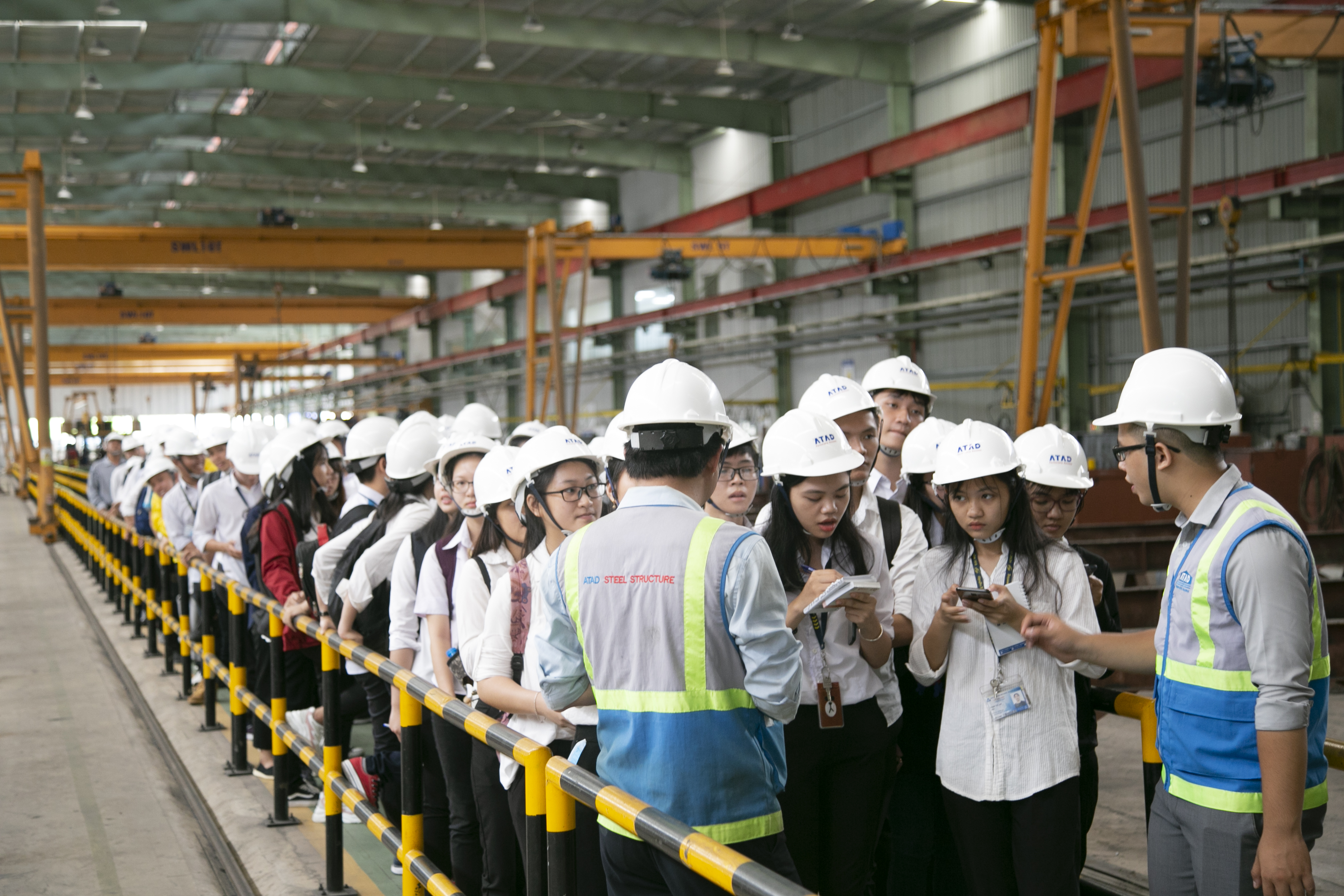 지난 수년 동안 ATAD는 수천 명의 국내외 베트남 학생들에게 이 지역에서 가장 크고 현대적인 철골 구조물 공장 중 하나에서 실질적인 지식과 경험을 제공하기 위해 많은 견학을 가졌습니다. 공장에서 대학생들은 국제 표준에 따라 철골 구조물을 생산하는 과정을 탐구할 수 있었습니다. 또한 공장의 열정적인 안내를 통해 ATAD에 관해 더 많은 것을 탐구할 수 있고, 특히 회사의 인턴쉽 및 노동 채용 정책에 대해 더 많이 알 수 있는 기회가 있습니다.